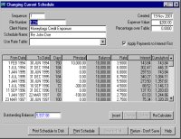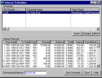 A Schedule has two parts: The header, which contains file number, name, and a pointer to the Rate table used, and a set of detail records where each transaction for the schedule is recorded. These transactions may be draws (increased debt), Payments (decrease debt) or simply interest accrued.